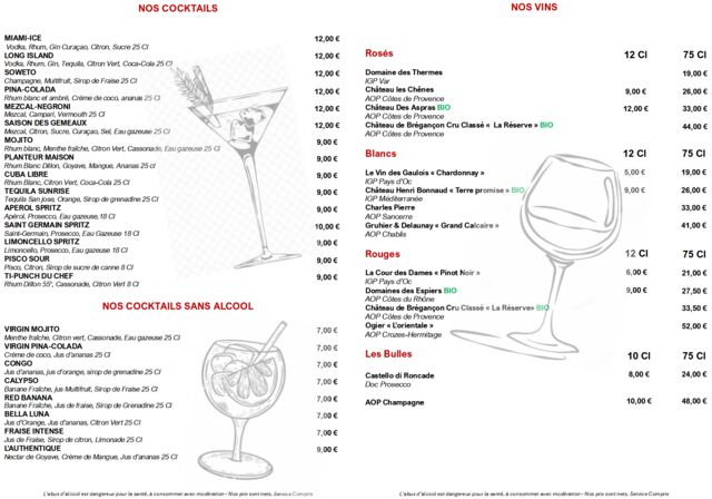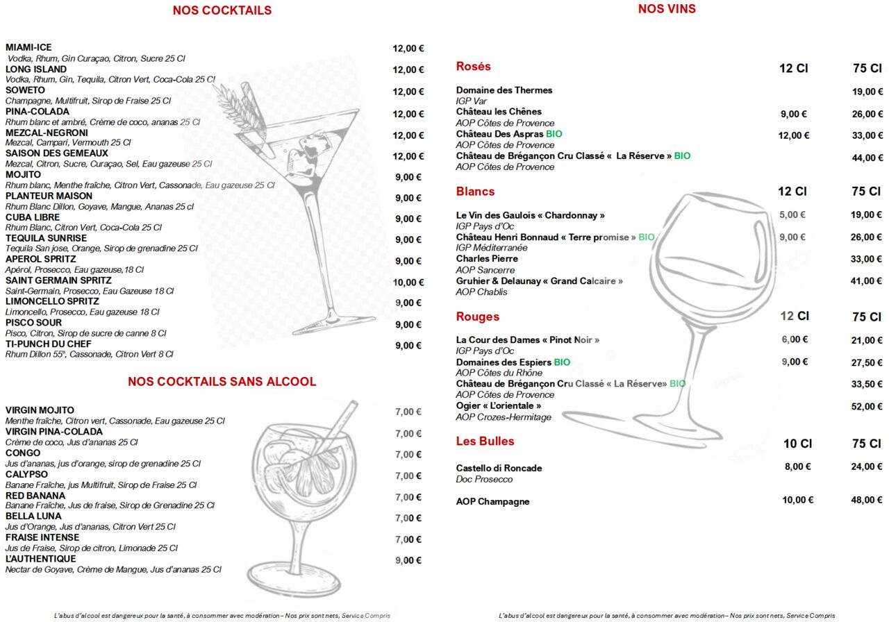 Notre chef vous concocte un menu sur mesure avec vous comprenant les plats, les desserts et les boissons de votre choix, tout est possible.
